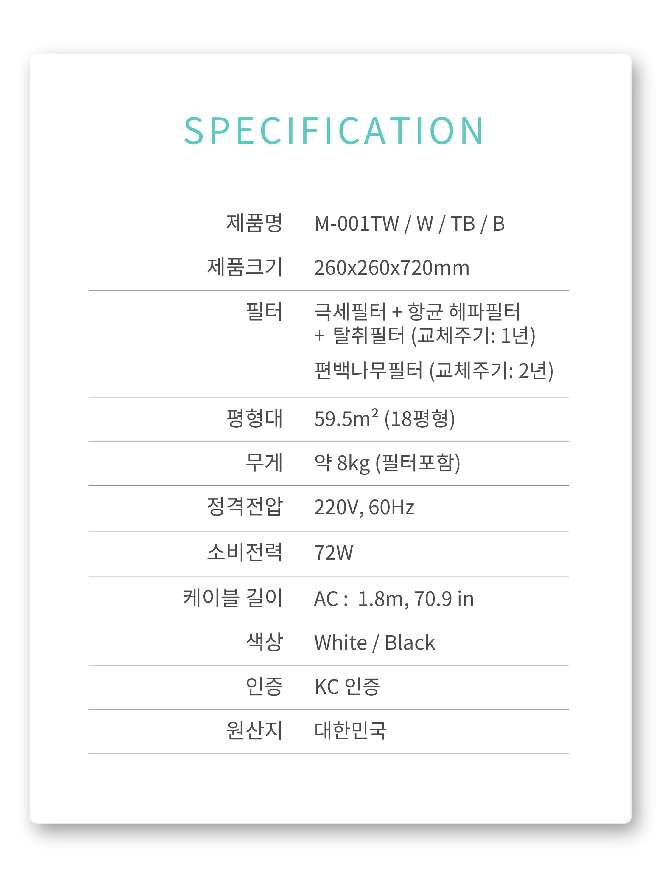 제품번호 : M-001W